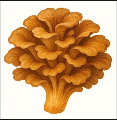 Maitake mushrooms (Grifola frondosa) are rich in beta-glucans and strengthen the immune system, helping the body fight off illness and reduce inflammation. Their anti-inflammatory properties ease arthritis pain and improve joint flexibility, keeping dogs more active and comfortable. Maitake is also studied for its cancer-fighting potential, supporting cellular health and enhancing the body’s natural defenses.